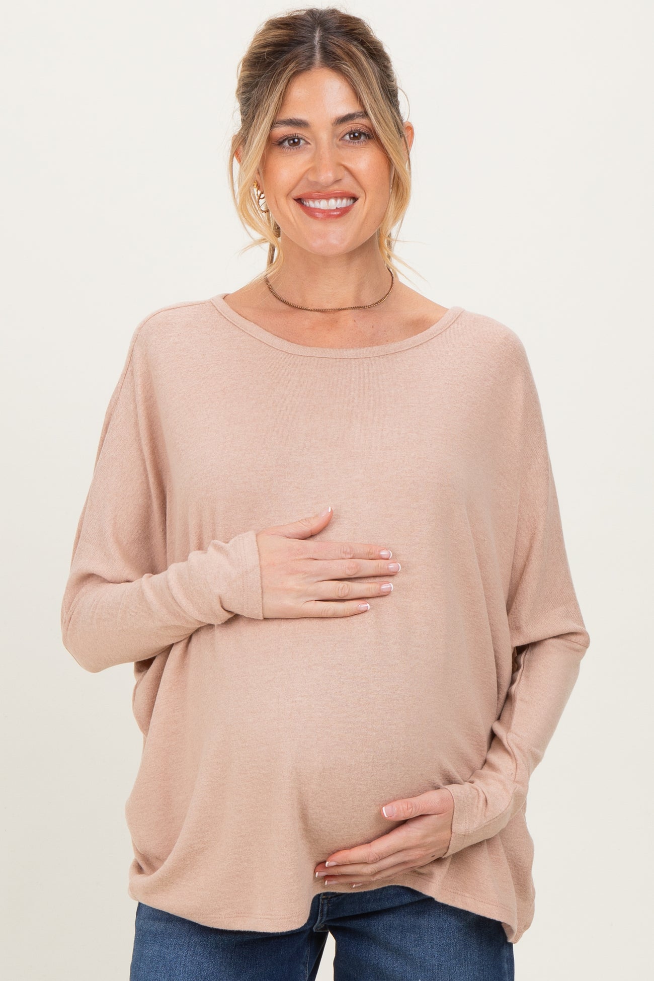 Taupe Relaxed Fit Dolman Long Sleeve Maternity Top
