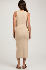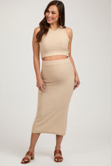 Taupe Sleeveless Crop Maternity Skirt Set