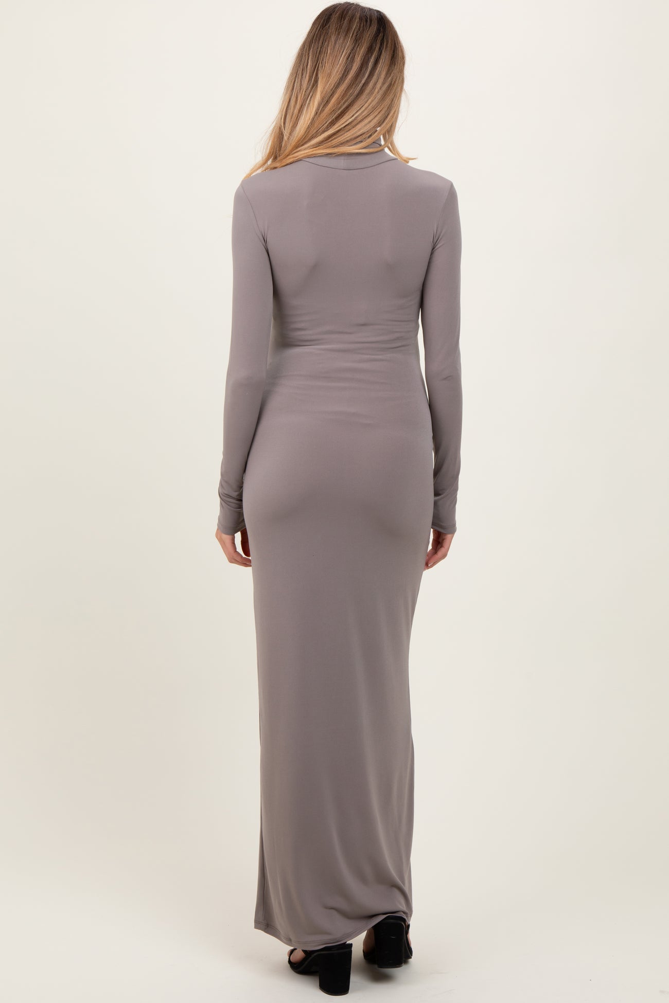 Taupe Turtleneck Long Sleeve Fitted Maternity Maxi Dress