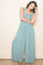 Embrace effortless style with our Teal Floral Flowy Jumpsuit. Featuring a delicate all-over floral print in soothing teal tones, this jumpsuit boasts a flattering smocked bodice and ruffled shoulder straps for a feminine touch. The wide-leg flowy pants create an elegant silhouette perfect for daytime outings or casual evenings. Made from lightweight, breathable fabric, it ensures comfort and movement all day long. Pair it with sandals for a breezy, chic look or dress it up with heels and accessories. Your go-to piece for a fresh, timeless summer vibe! Available in multiple sizes.