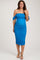 Turquoise Off Shoulder Sleeveless Ruched Mesh Maternity Midi Dress