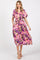 Violet Floral V-Neck Short Puff Sleeve Tie Waist Satin Midi Dress