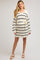 White-Black Striped Knit Collared Long Sleeve Maternity Sweater Dress