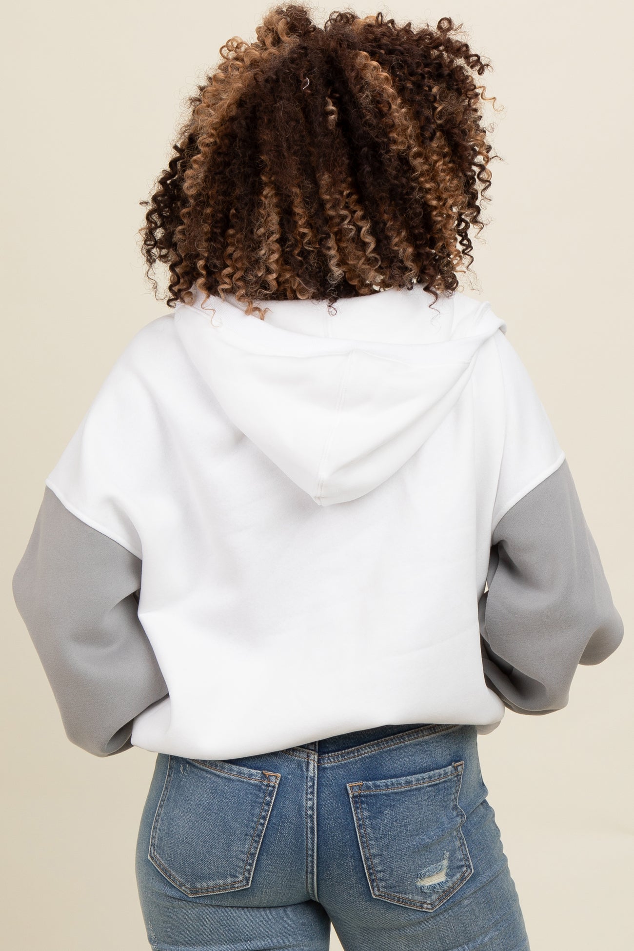 Stay cozy and chic with this White Colorblock Half Zip Hoodie. Featuring a clean white body contrasted with soft gray sleeves, this hoodie offers a modern twist on a classic look. The half zip front lets you adjust your style and ventilation, while the roomy kangaroo pocket keeps your hands warm or holds your essentials. Made from a soft, comfortable fabric blend, it’s perfect for casual days, weekend outings, or layering on cooler evenings. With its relaxed fit and ribbed cuffs, this hoodie promises effortless style and all-day comfort. Elevate your basics with this must-have wardrobe staple!