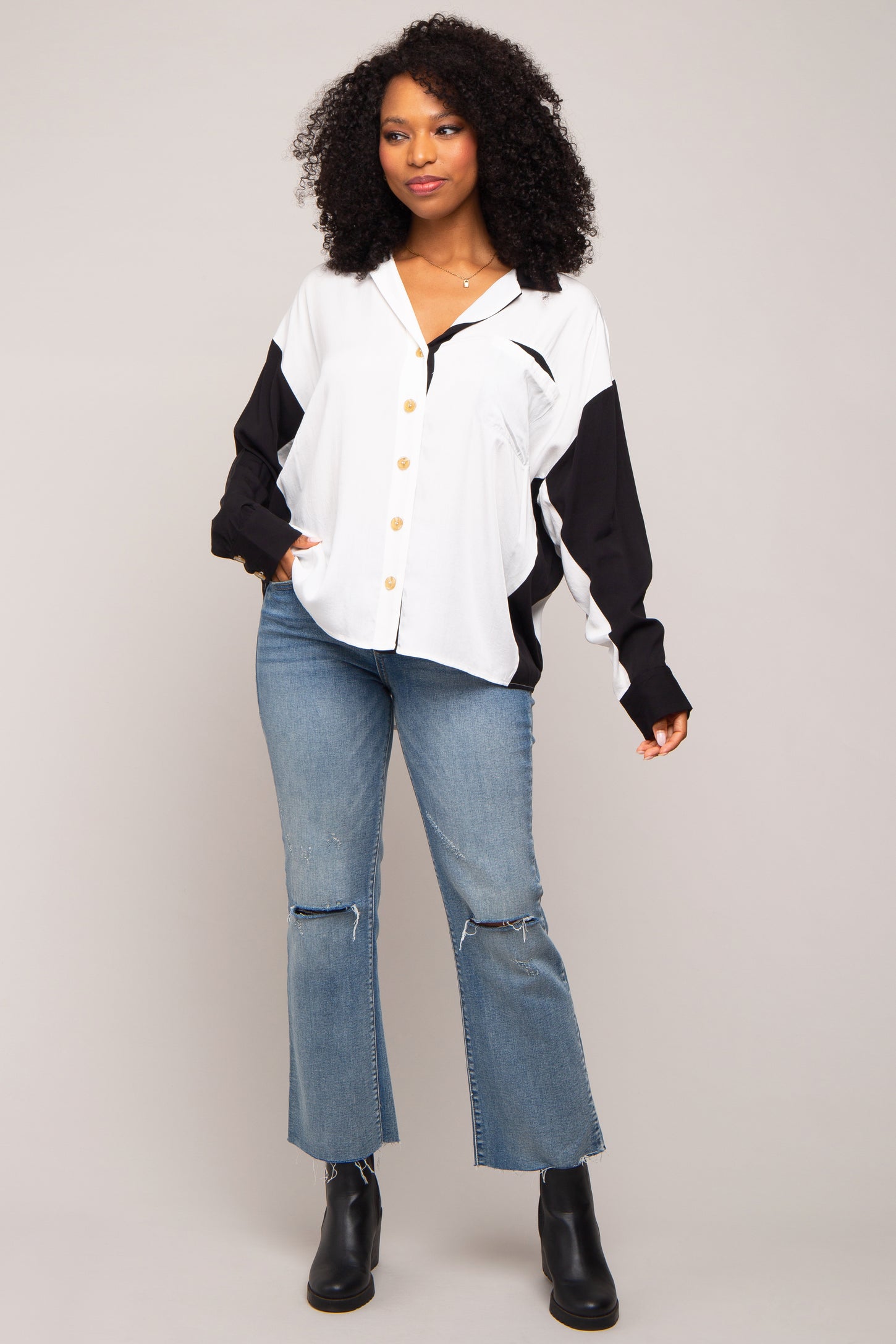 White Colorblock Oversized Blouse