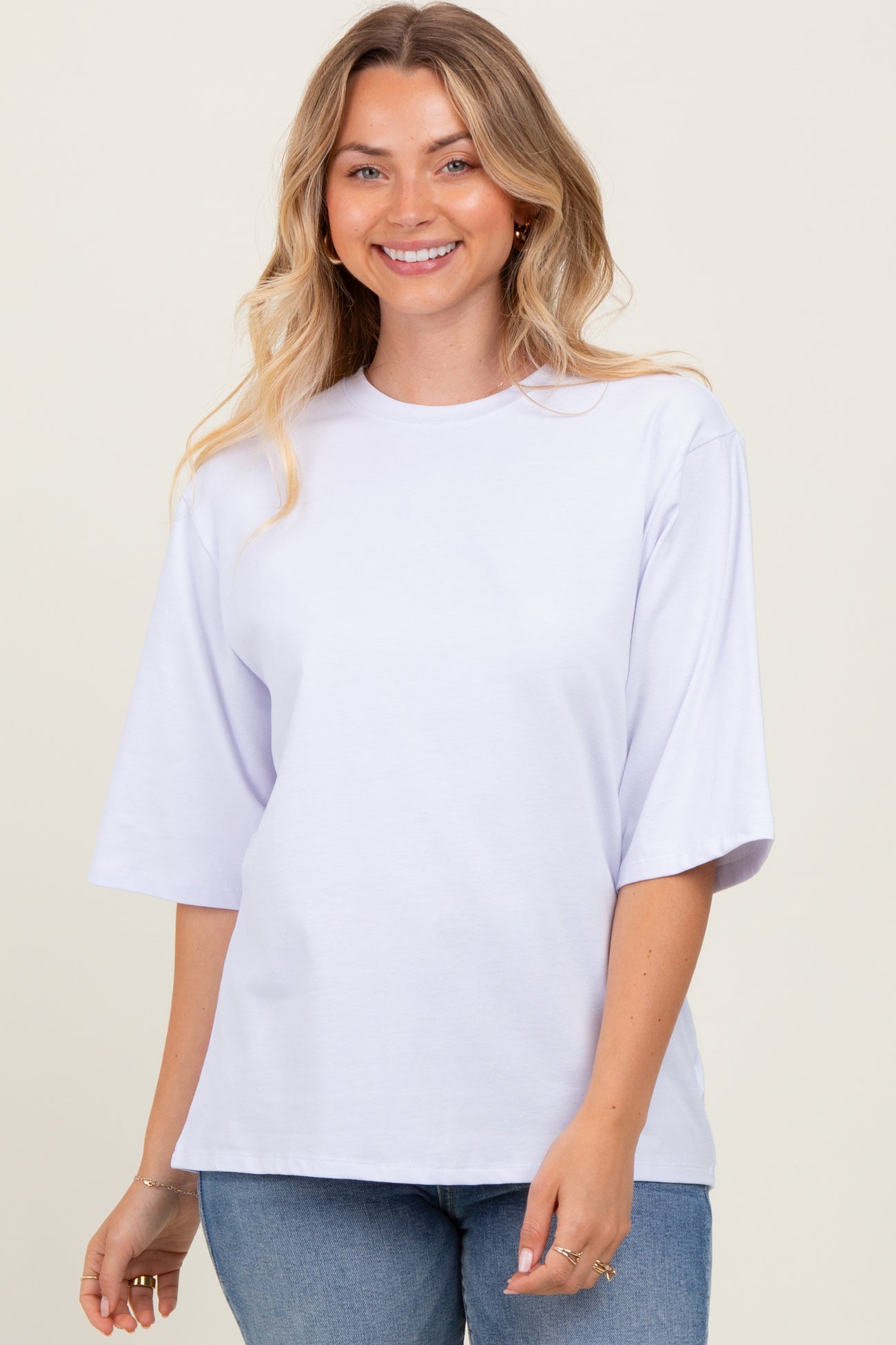 Elevate your casual wardrobe with this oversized crew neck tee, designed for ultimate comfort and effortless style. Crafted from soft, breathable fabric, it offers a relaxed fit that drapes beautifully on all body types. Featuring elbow-length sleeves and a durable ribbed neckline, this tee is perfect for layering or wearing on its own. Pair it with your favorite jeans, shorts, or leggings for an easy, laid-back look that never goes out of style. Versatile and timeless, this essential tee is a must-have for everyday wear and endless mix-and-match possibilities.