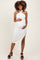 White Halter Tied Criss-Cross Ribbed Maternity Midi Dress