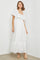 An iridescent midi dress with a squared neckline, short textured puff sleeves, and a gathered bottom tier.