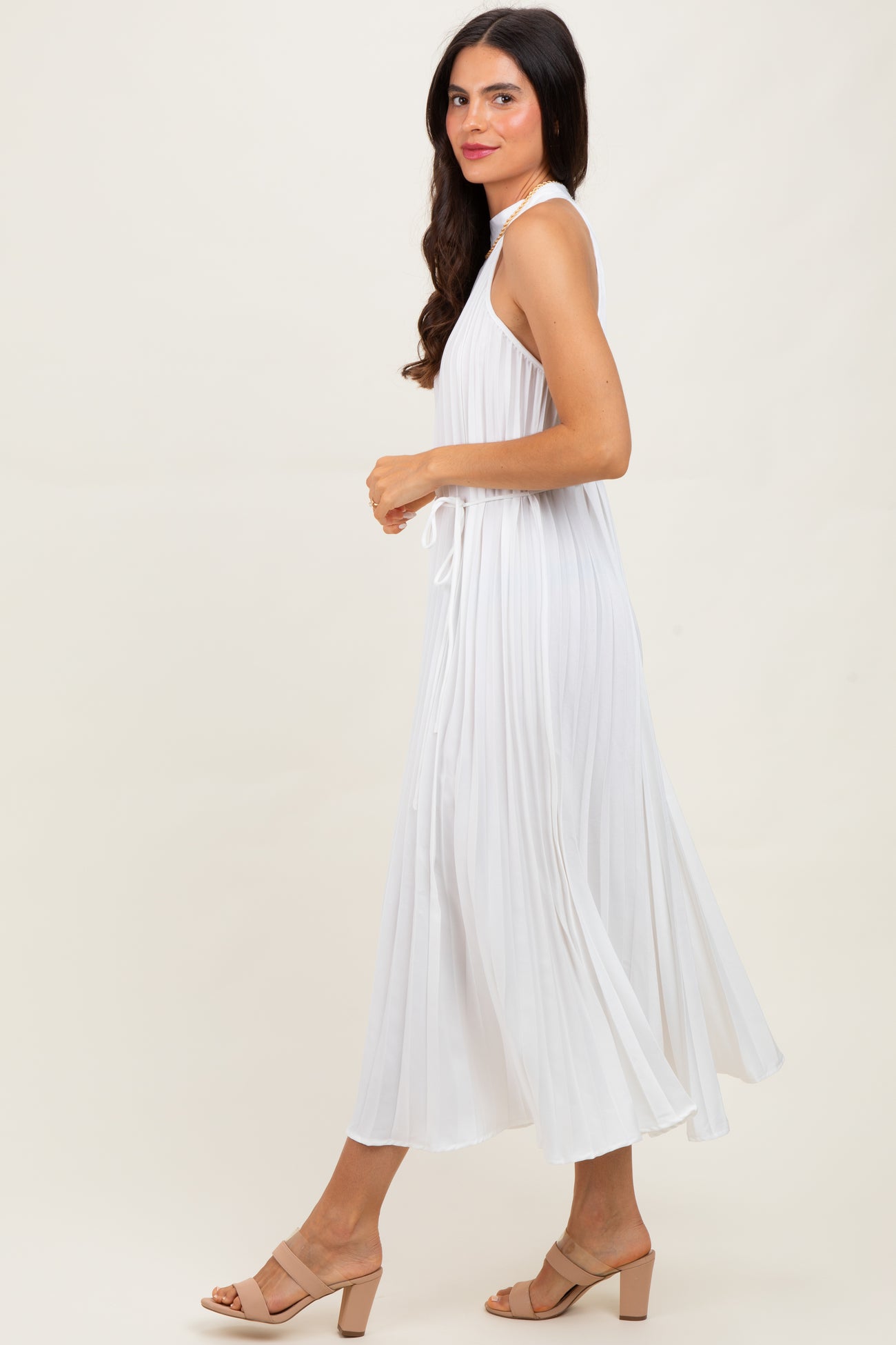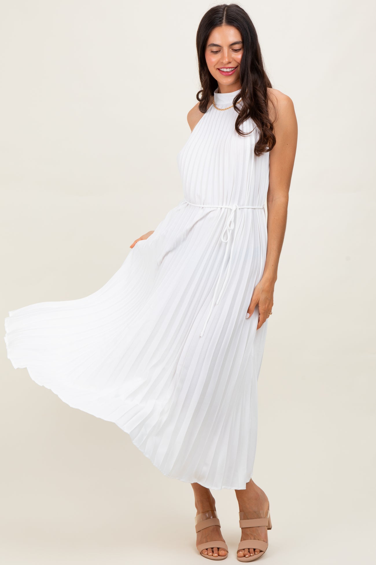 White Pleated Halter Dress