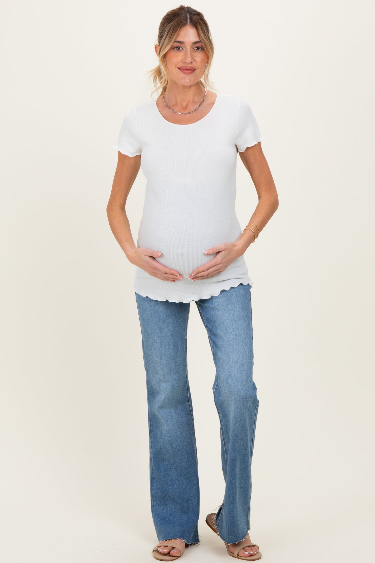 Elevate your maternity wardrobe with this charming short sleeve top designed for comfort and style throughout your pregnancy. Crafted from a soft, stretchy fabric, it gently hugs your growing bump while allowing freedom of movement. The delicate ruffle edging on the sleeves and hem adds a feminine touch, making it perfect for casual outings or layering under jackets. Its breathable material keeps you cool and cozy, whether you’re at work or running errands. This versatile maternity top pairs effortlessly with jeans, leggings, or skirts, ensuring you stay effortlessly chic every step of the way.