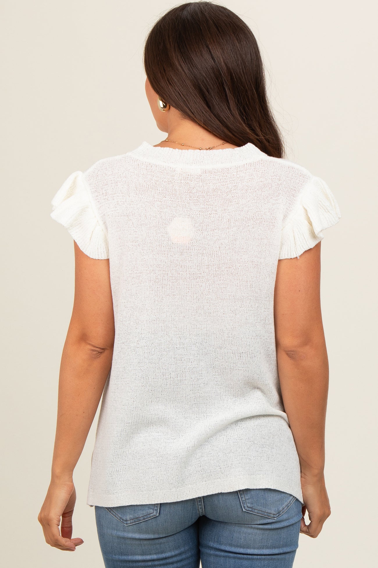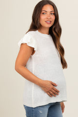 White Ruffle Short Sleeve Maternity Top