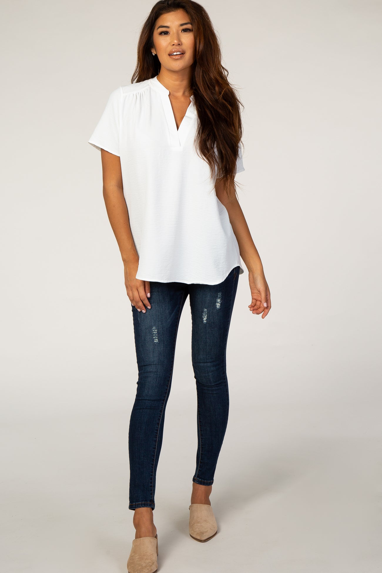 White Short Sleeve V-Neck Blouse