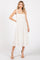 A sleeveless midi dress featuring front buttons, a tiered skirt, a ruffle hem, back smocking and a square neckline.