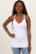 Elevate your everyday wardrobe with this White V-Neck Racerback Tank Top. Crafted from soft, breathable fabric, it offers all-day comfort with a flattering ribbed texture. The stylish V-neckline and racerback design create a modern, sporty look perfect for layering or wearing solo. Whether paired with jeans for a casual day out or layered under a jacket for a chic evening vibe, this tank top is a versatile must-have. Its slimming fit highlights your silhouette while providing ease of movement. Refresh your basics with this essential piece that combines simplicity and style effortlessly.