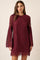 Wine Eyelet Edge Lace Bell Sleeve Woven Dress