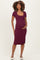 Wine Square Neck Side Slit Maternity Midi Dress