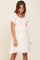 A floral and dot printed dress featuring a square neckline, short puff sleeves, a button front, a smocked elastic back and double lining.