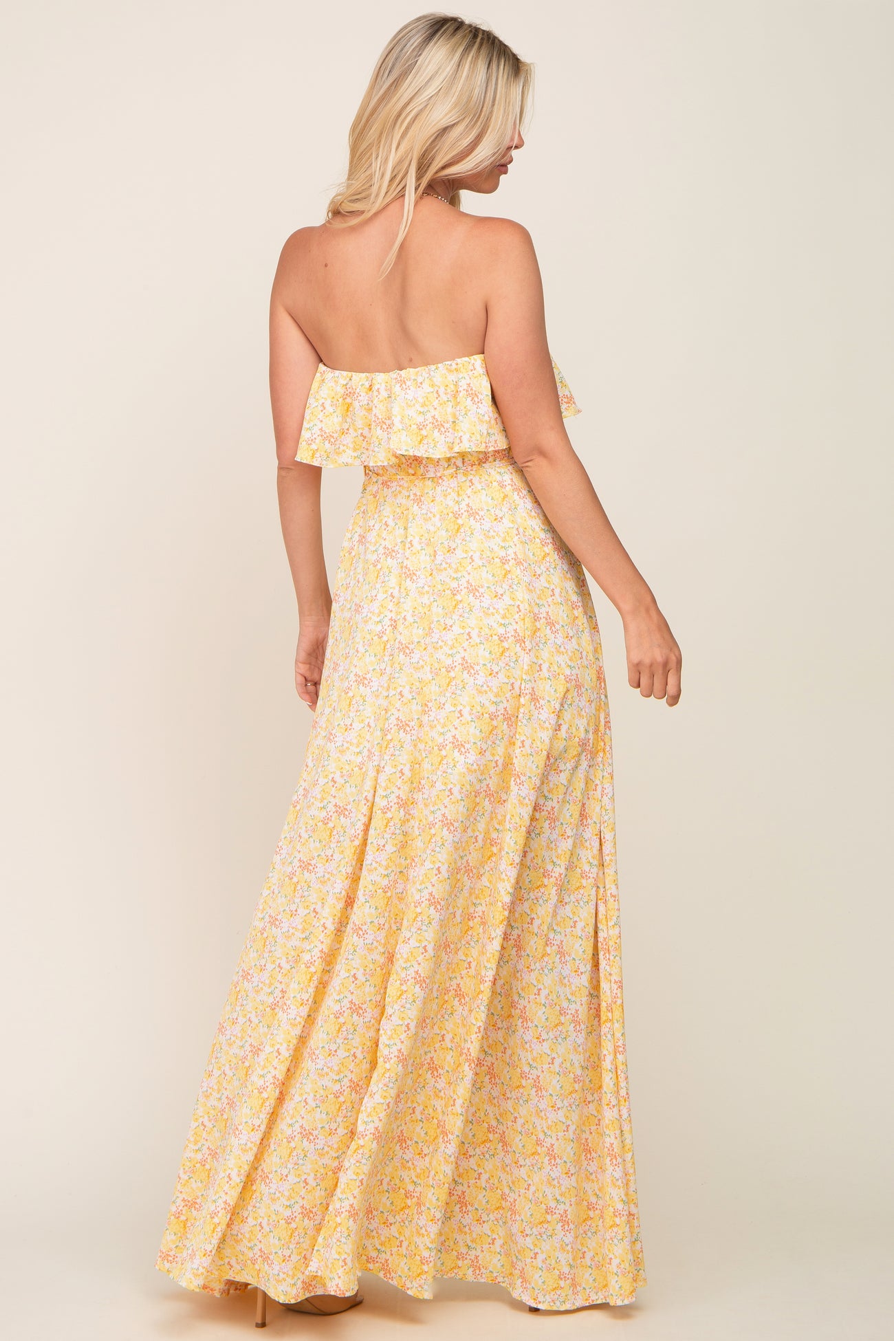 Yellow Floral Sleeveless Maxi Dress