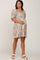 A floral print maternity dress featuring a square neckline, short puff sleeves with a ruffle trim and an empire waist.