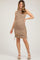 A multi-color striped ribbed maternity dress featuring adjustable self-tie ruching and a rounded neckline.